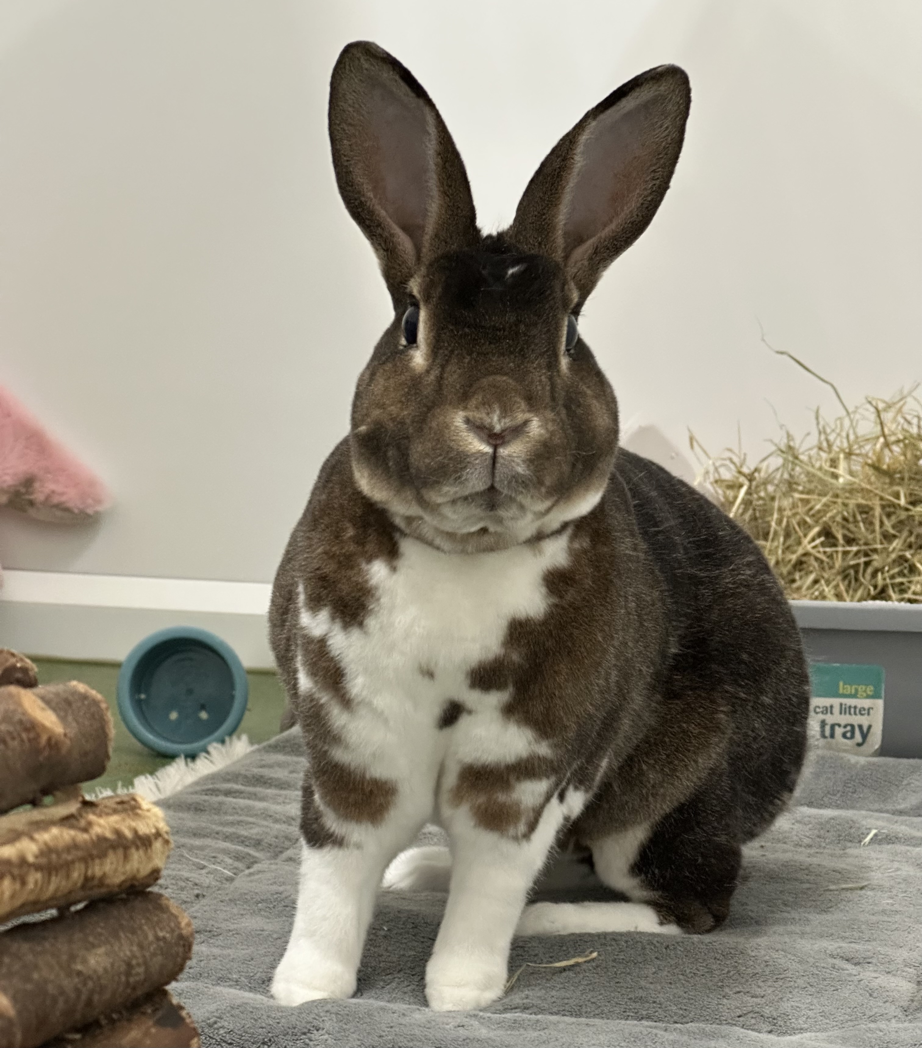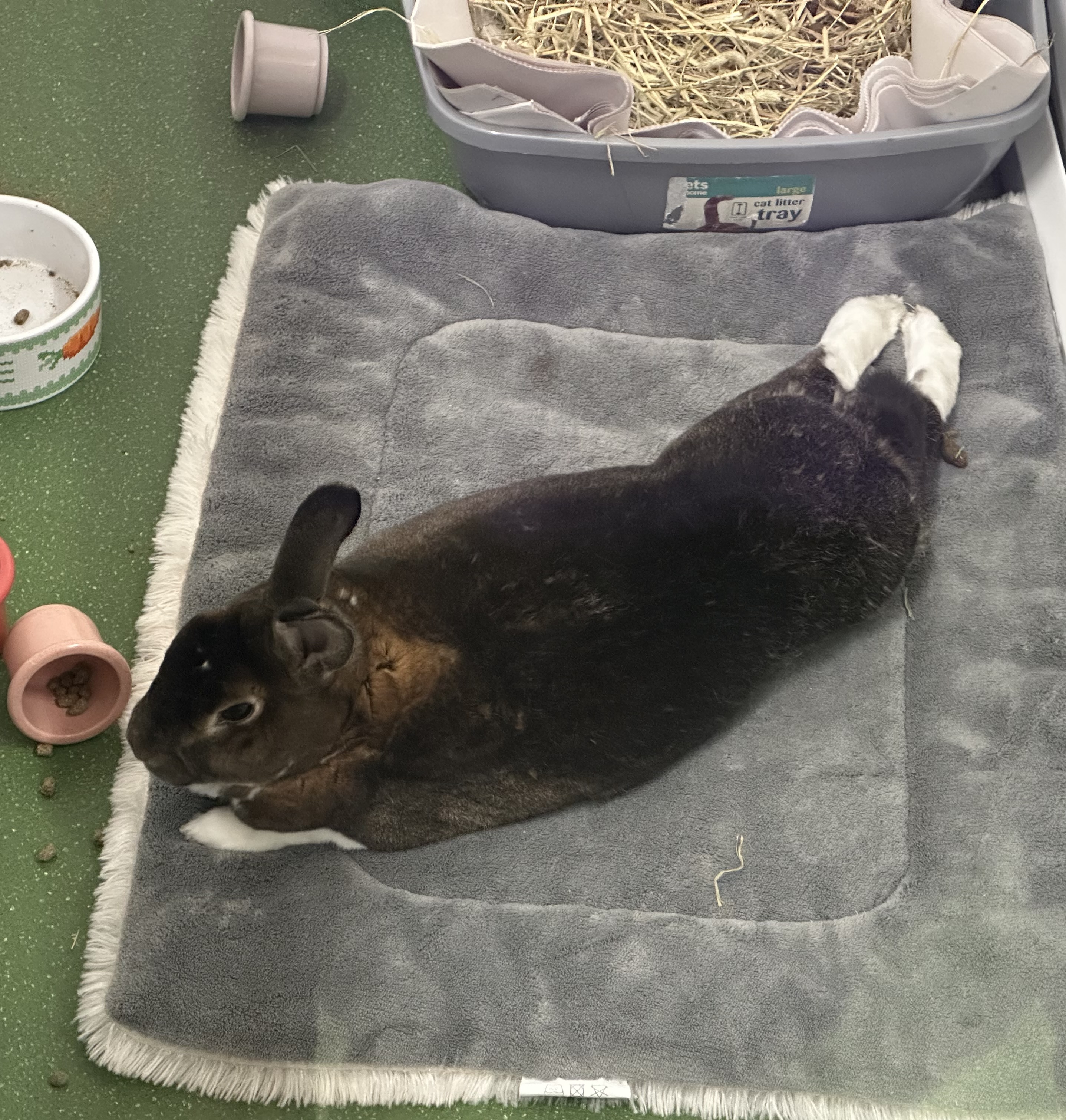 He's not a super people-orientated rabbit, and generally prefers his own space to explore, but he does enjoy an occasional head rub.