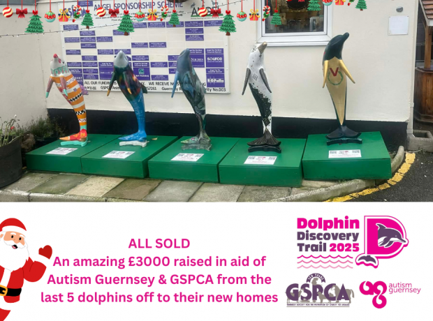 “We are delighted to announce that all dolphins now have sold with 4 at £500 and Dylan Jeremy sold at £1000. The Dolphin Discovery Trail has been an incredible success, raising vital funds and bringing so much joy to our community. These five dolphins were truly special, and this auction gave a fantastic way to support two charities that make a huge difference locally. Both Autism Guernsey and the GSPCA are hugely grateful to all involved and supported this amazing event and watch out for news on the next big event.”