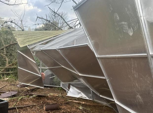 During Storm Goretti, the GSPCA’s recently built temporary aviaries—constructed last year to safely house birds during the ongoing #GSPCABiggestBuildAppeal redevelopment—suffered horrendous damage, including multiple torn panels and structural issues. These aviaries have been essential in caring for injured, sick and rescued birds while major construction works take place across the site.