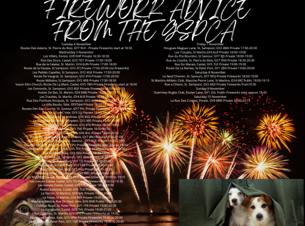 With 21 firework events already registered for November on the States of Guernsey website https://gov.gg/fireworks , the GSPCA is calling on islanders to be mindful of the impact fireworks can have on animals.