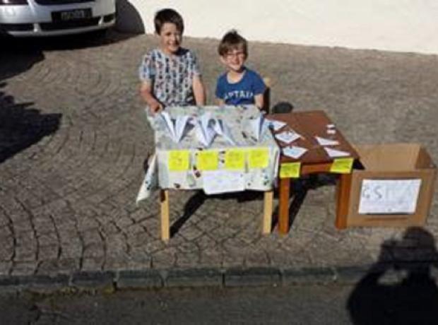 The two young men had a ‘paper sale’ and sold paper planes, paper crackers, paper dogs and fortune tellers for the GSPCA.